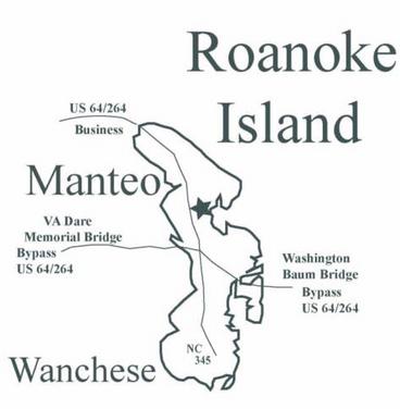 If you are entering the Outer Banks from Manns Harbor you will want to take a left at the first light on Roanoke Island. Follow Business 64/264 for about 5 miles into the town of Manteo. Take a right onto Budleigh Street.