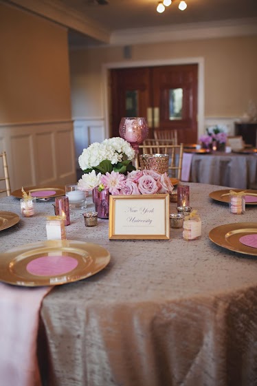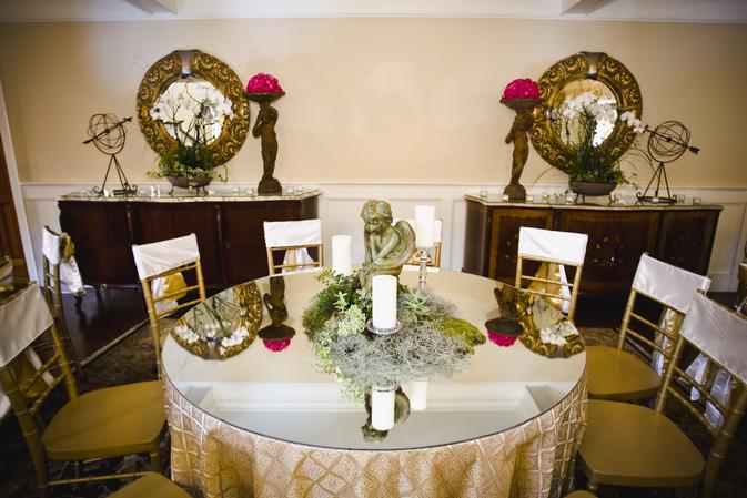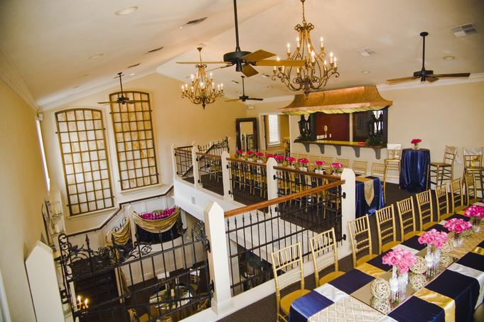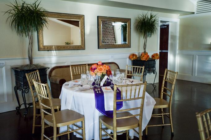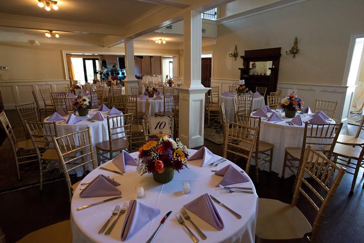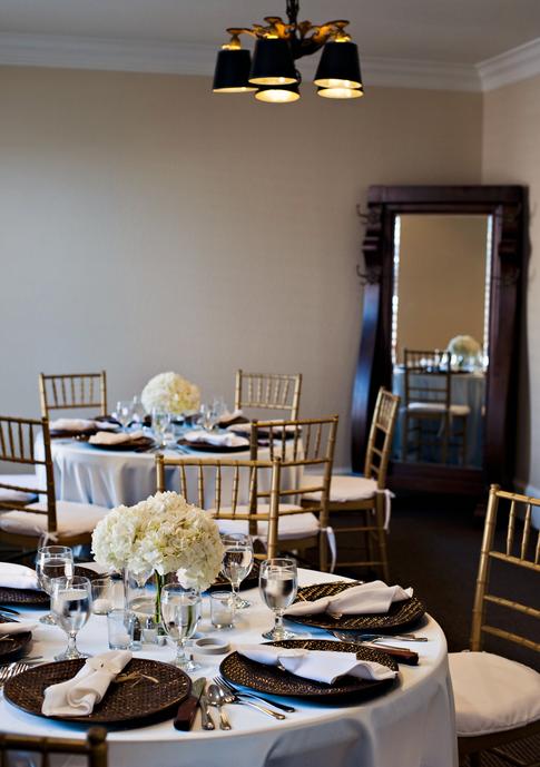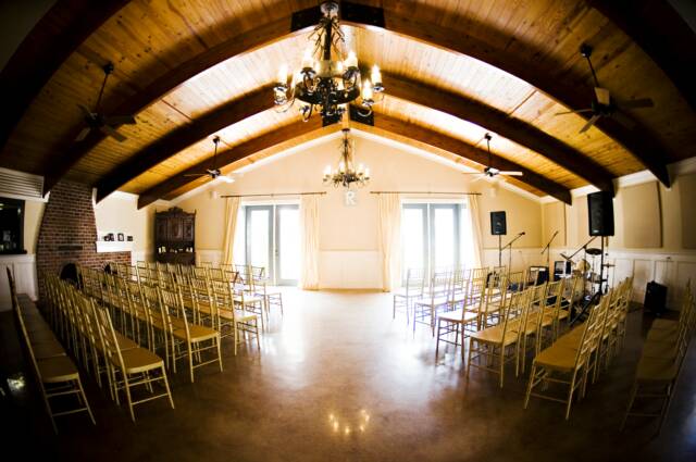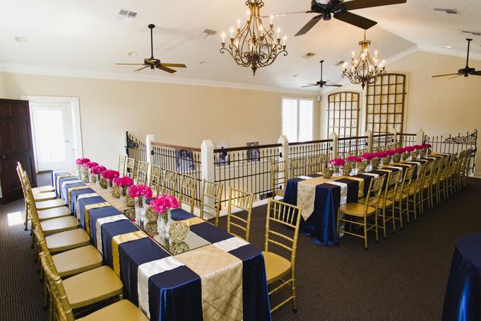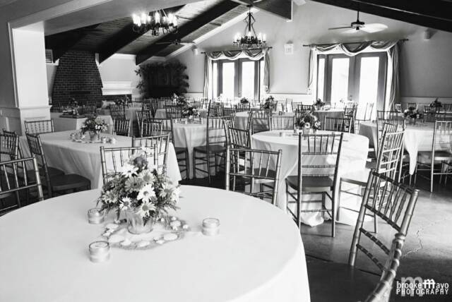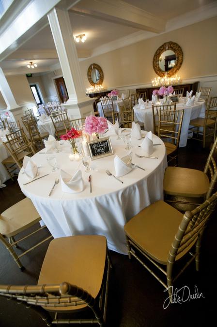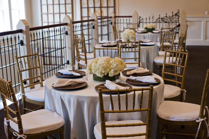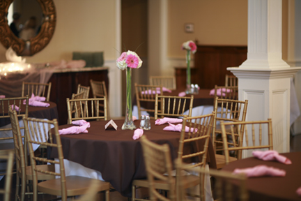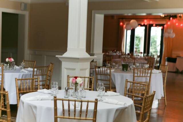 We provide 25 (4 foot) round banquet tables, 2 (8 foot) buffet tables, a cake table and 150 gold ballroom chiavari chairs. Sound system ad speakers throughout the building are just some of what we include with the use of our facility.