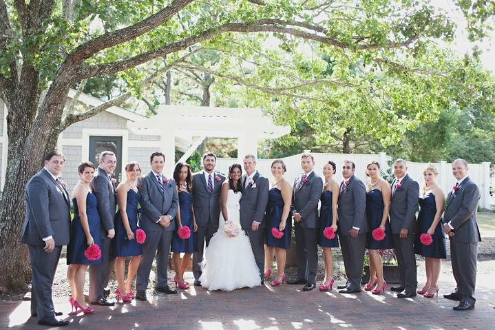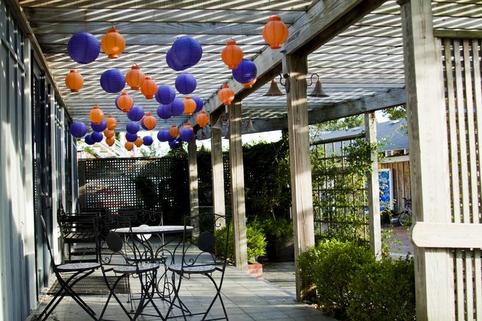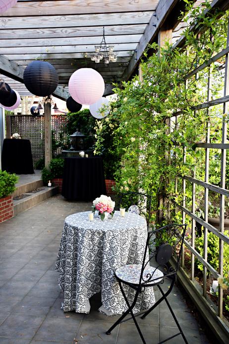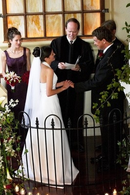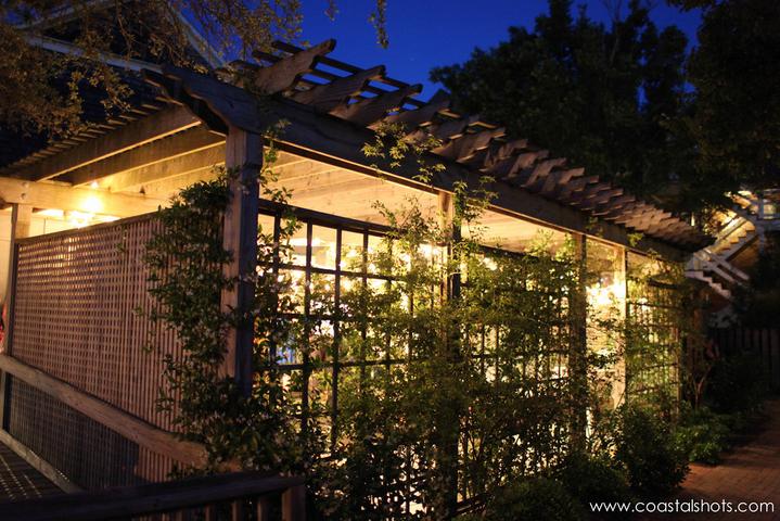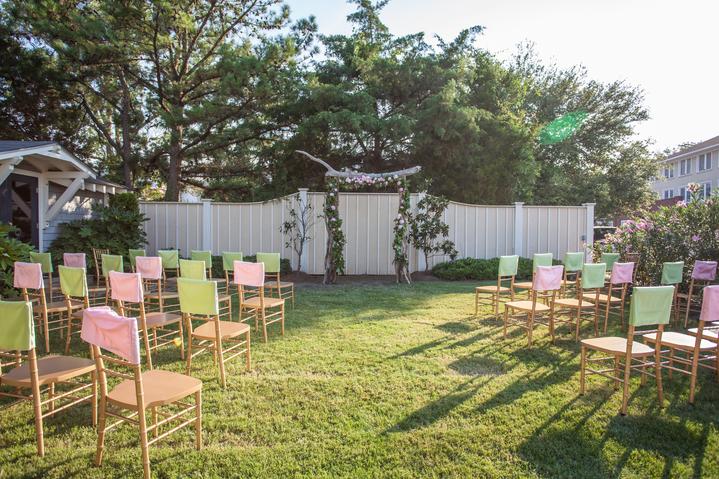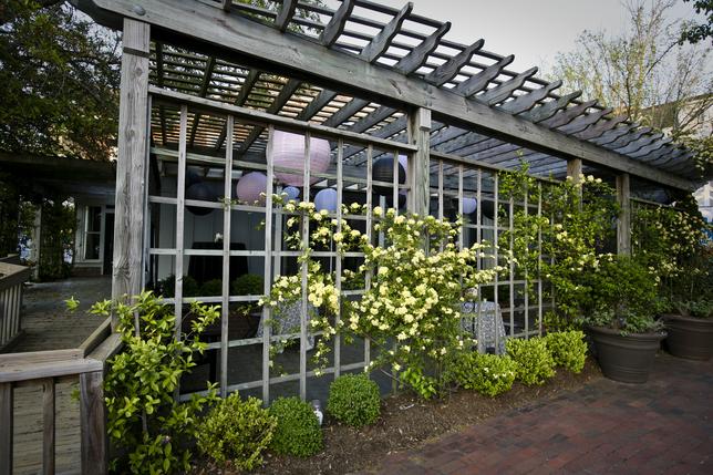 Embrace the outdoors on the trellised veranda perfect for outside seating and/or dining. A waterfountain surrounded by lush ivy provides another wonderful photo opportunity. If you choose to decorate the trellis, electrical outlets are in the rafters, eliminating the need for unsightly extension chords.