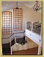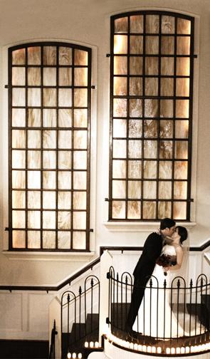 As you enter the first Ballroom, you will see our beautiful staircase, flanked by large stained glass windows and encased with curved wrought iron railing. This creates the perfect backdrop for showcasing your cake, performing the wedding ceremony or tossing your bouquet. This room features two handsome columns and a spacious area for dining or dancing. Two marble top buffets with matching carved mirrors frame one wall, a mahogany mantle is centered on another wall, and the next wall is an opening into the Grand Ballroom.